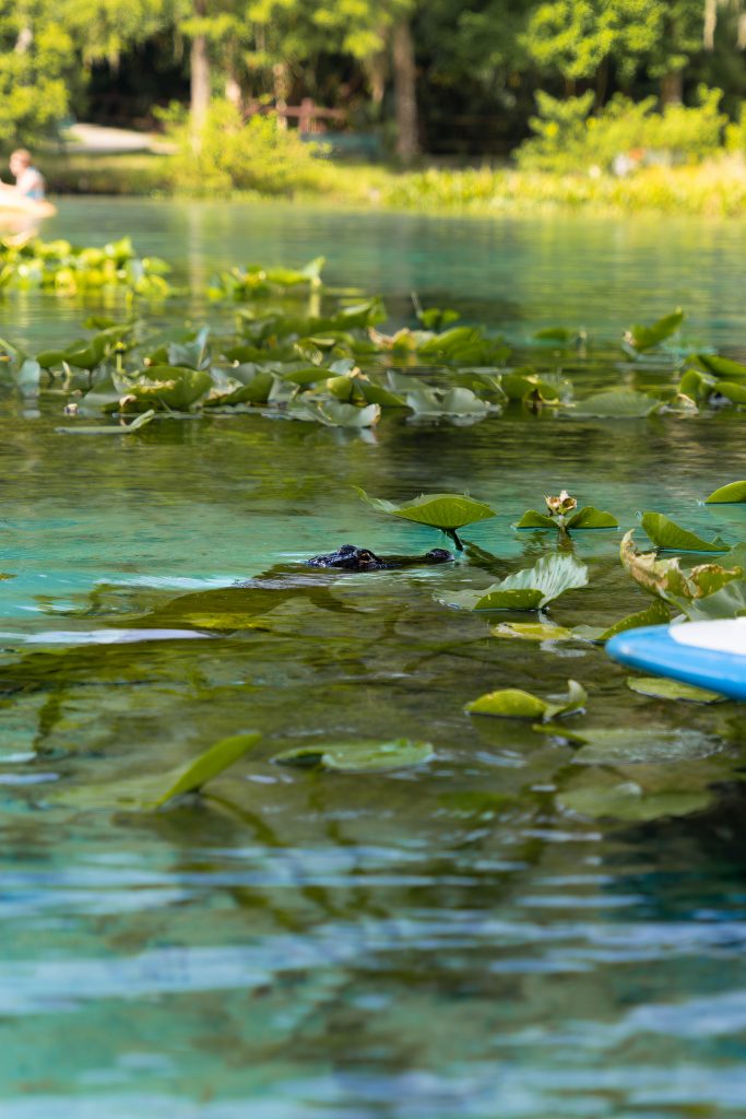 Although this is one of the few springs alligators are known to frequent, they are very small. I did not see one fully grown gator while visiting Alexander Springs. This picture above shows a baby gator we accidentally scared out of hiding on the outer edge of the spring.